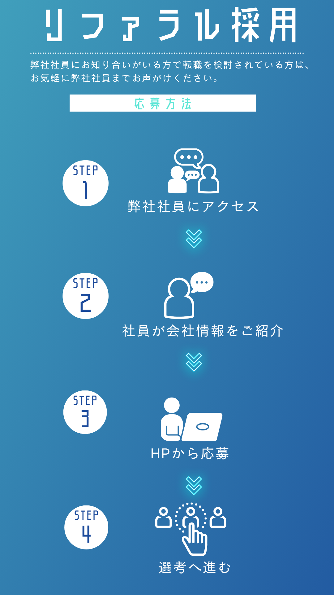 募集背景 | 業績好調のため、様々な業種の案件を所持しておりますが、技術者が不足しております。 また、社内体制を強化し、更なる成長を目指しております。 |